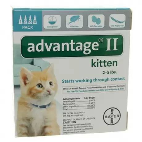 Avoid contact with eyes or clothing. The Bayer Advantage II Flea Treatment has been specifically designed for kittens weighing between 2-5 pounds. It is formulated for dogs and puppies over 12 weeks.
